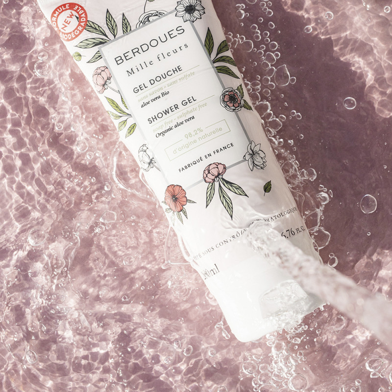 Ce gel douche est composé à 98% d'ingrédients d'origine naturelle, fabriqué en France.